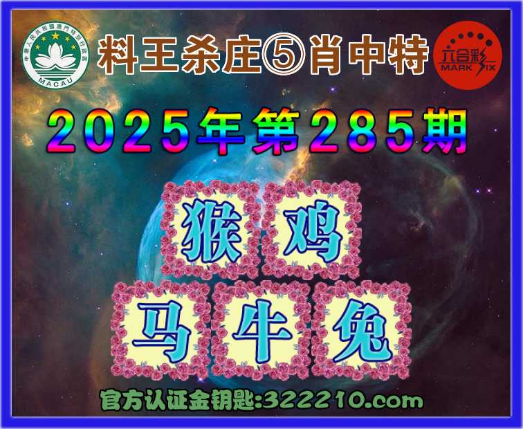 285期: 😍『料王杀庄』 😍⑤肖中特😍【猴.鸡..牛.兔】开:马24