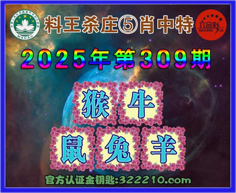 309期: 😍『料王杀庄』 😍⑤肖中特😍【猴.牛.鼠.兔.羊】开:00准