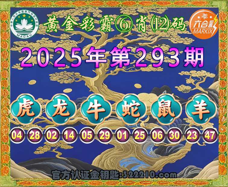 293期:〖黄金彩霸〗 🥉⑥肖⑿码🥉【虎龙牛蛇鼠】开:羊47