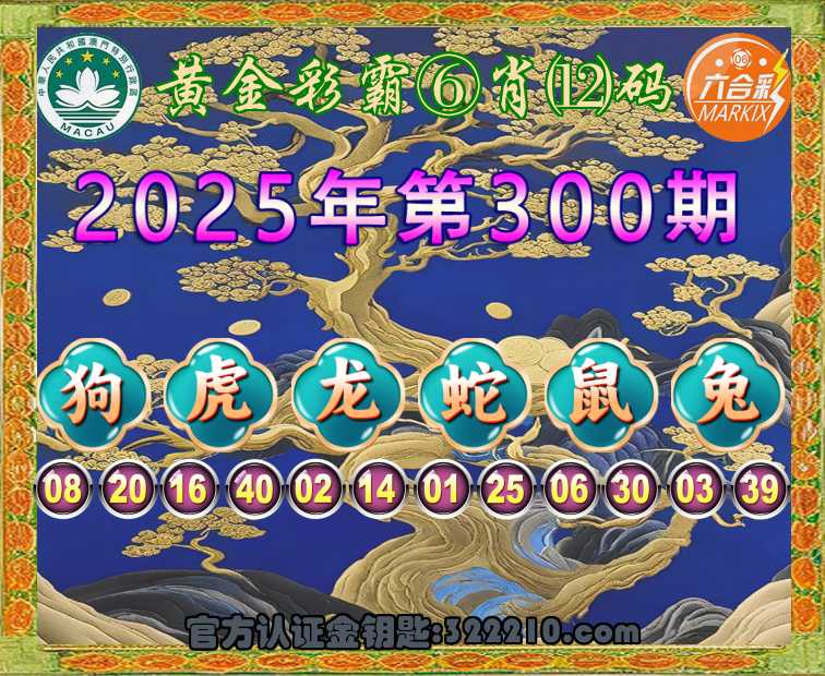 300期:〖黄金彩霸〗 🥉⑥肖⑿码🥉【狗龙蛇鼠兔】开:虎40