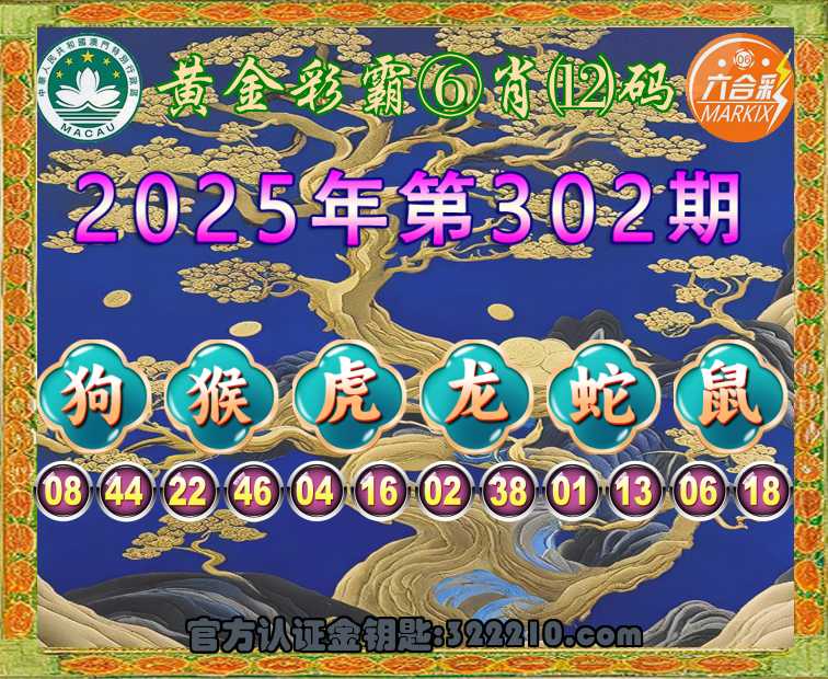 302期:〖黄金彩霸〗 🥉⑥肖⑿码🥉【狗虎龙蛇鼠】开:猴22