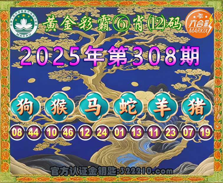 308期:〖黄金彩霸〗 🥉⑥肖⑿码🥉【狗猴马蛇羊猪】开:兔39