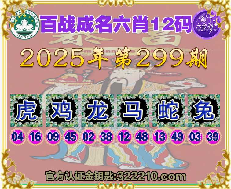 299期:《百战成名》 😳六肖12码😳【虎鸡龙马兔】开:蛇49