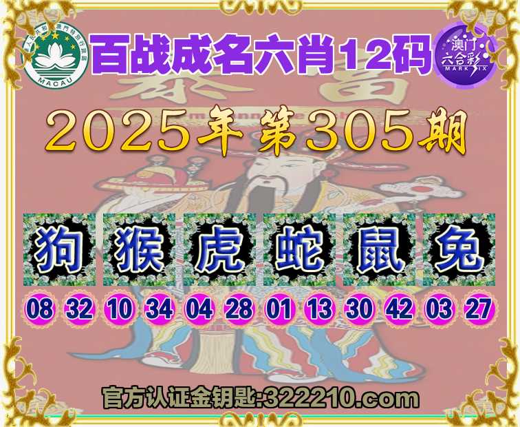 305期:《百战成名》 😳六肖12码😳【狗猴虎蛇兔】开:鼠42