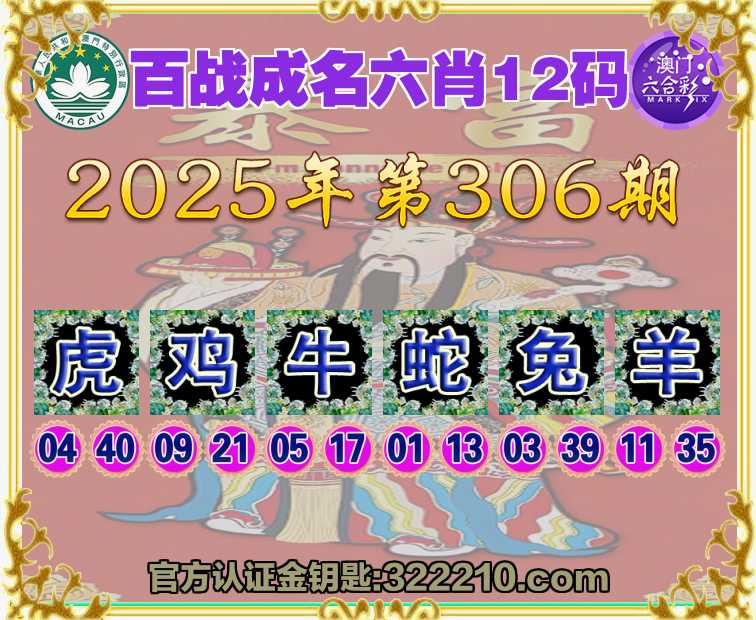 306期:《百战成名》 😳六肖12码😳【虎鸡蛇兔羊】开:牛17