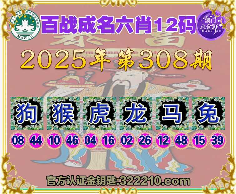 308期:《百战成名》 😳六肖12码😳【狗猴虎龙马】开:兔39