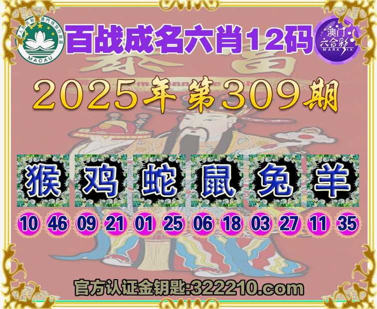 主题: 309期:金钥匙高手【百战成名🔥六肖12码】正版澳彩